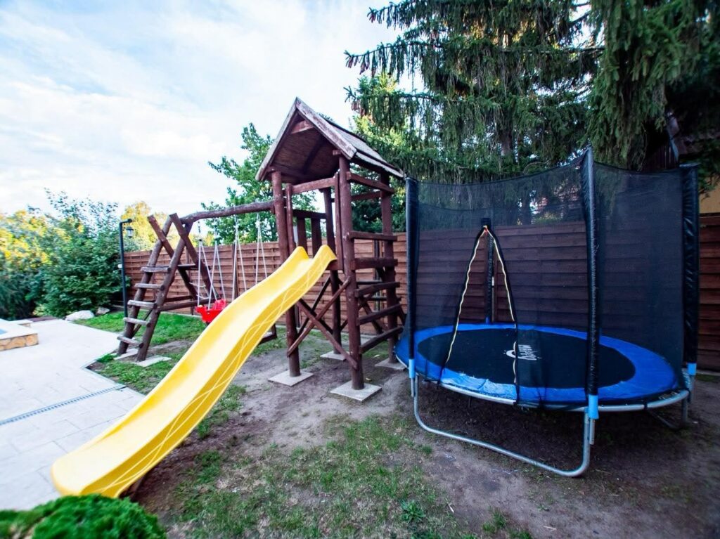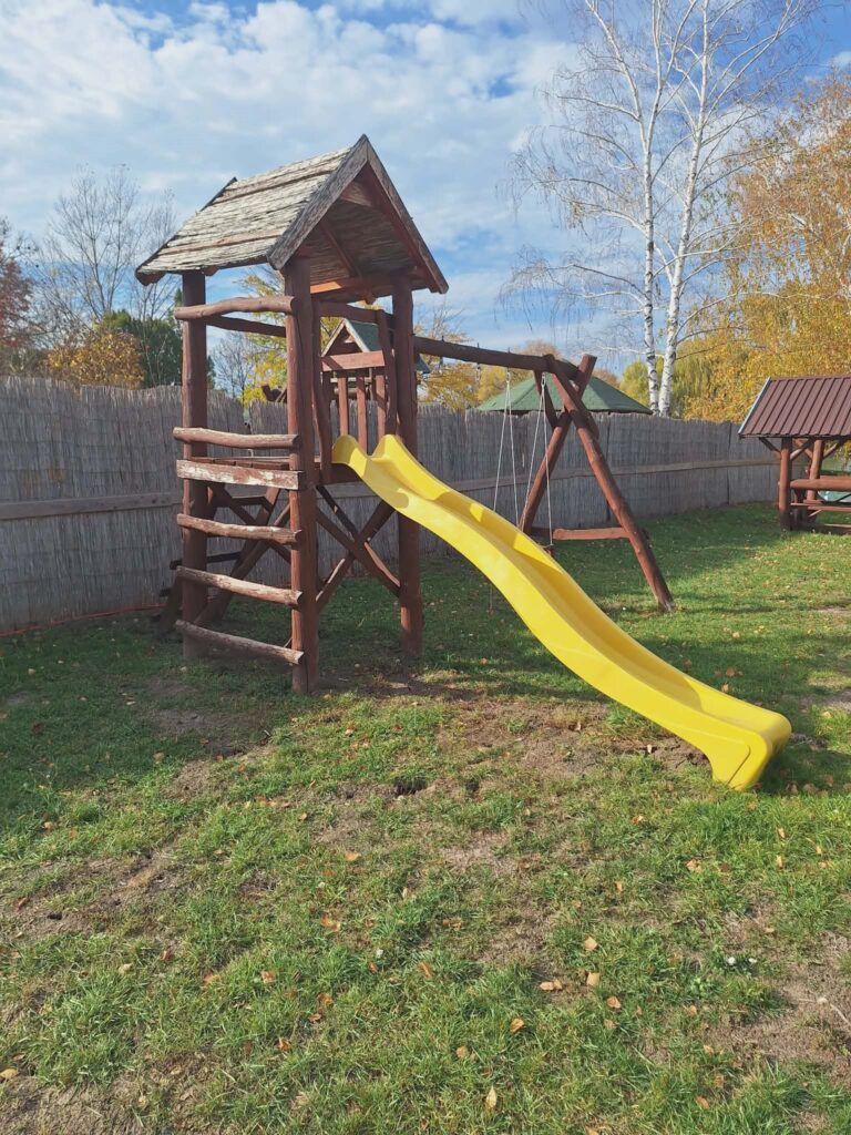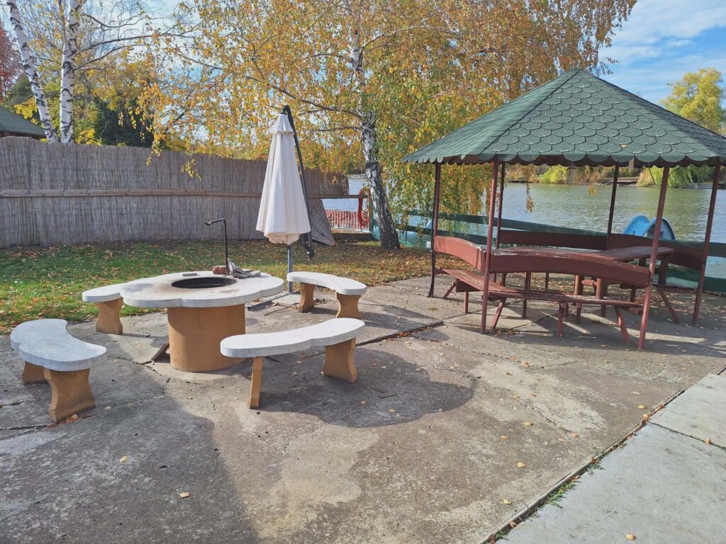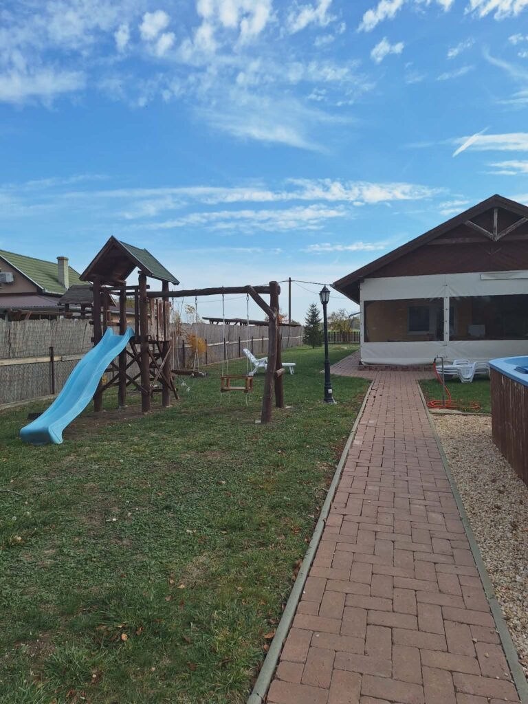 Felszereltsége: wifi, TV, medence, jakuzzi, szauna, játszótér, trambulin, kerti sütögető, grillező, bográcsozó, csónak, zárt parkoló, zárt partszakasz